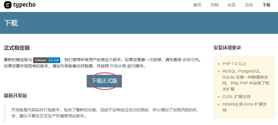 进入Typecho官网,下载正式版到本地电脑上。