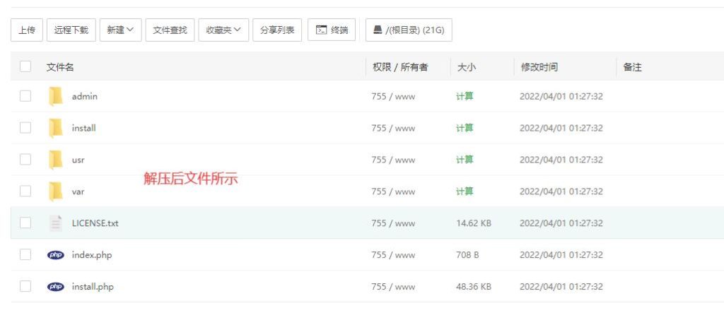 解压后文件目录如下所示(不同版本的Typecho文件可能有所不同):