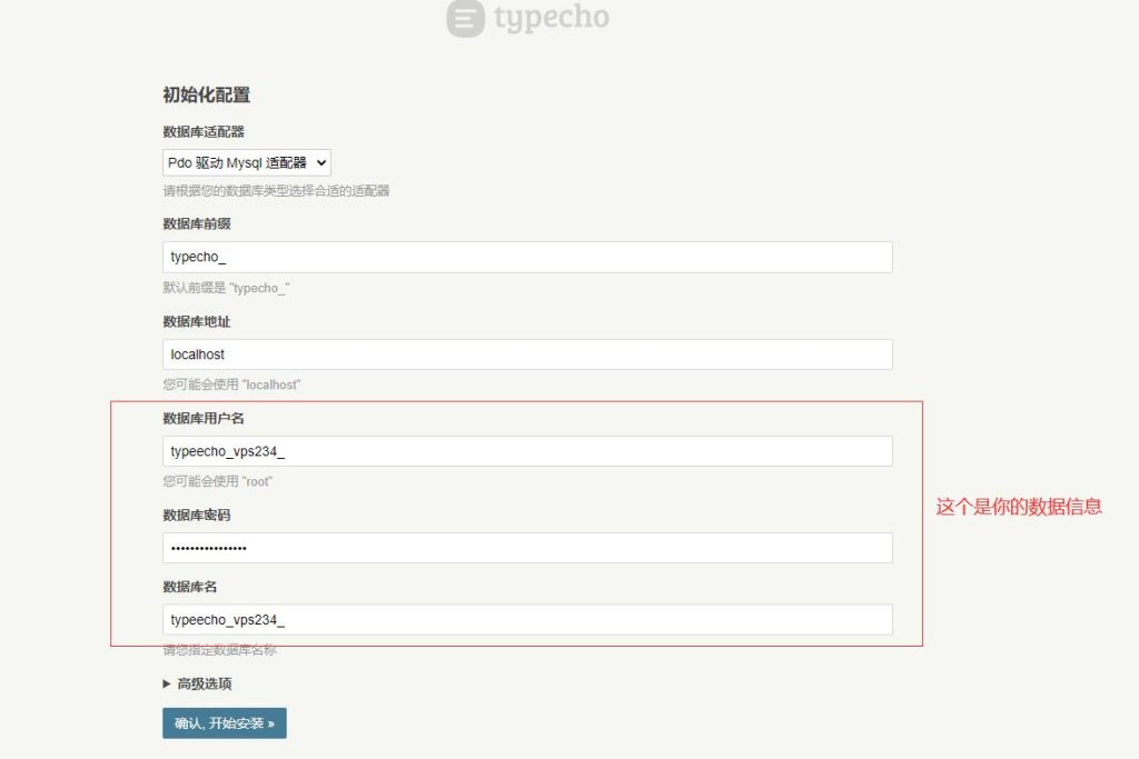 填写好如下所示的数据库信息,并提交: