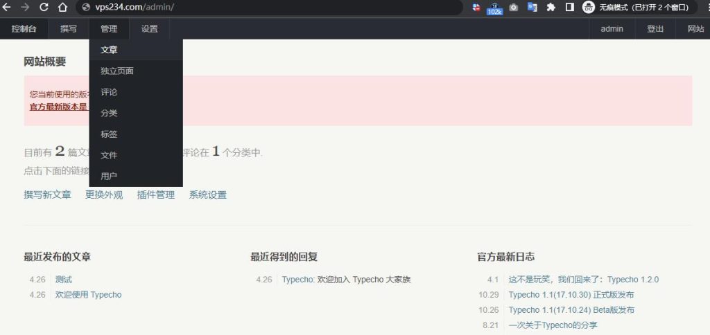 与WordPress等其他博客系统相比,Typecho的最大特点在于其“精简”。尽管WordPress功能丰富且强大,但对大多数博客用户而言,许多功能其实并非必需。而Typecho的全部文件仅约500Kb,因此运行速度更快,对服务器性能的需求也更低。 以下将详细介绍如何通过VPS搭建Typecho博客: