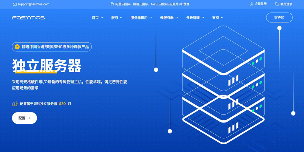 Fastmos,海外私人公司,主要运作香港、台湾、日本、马来西亚、美国等地的业务,接入国际BGP、大陆优化、精品线路、纯CN2等,产品包括云服务器、独立服务器、站群服务器、GPU服务器、DDoS高防服务器、10Gbps大带宽服务器等,商家支持USDT付款。