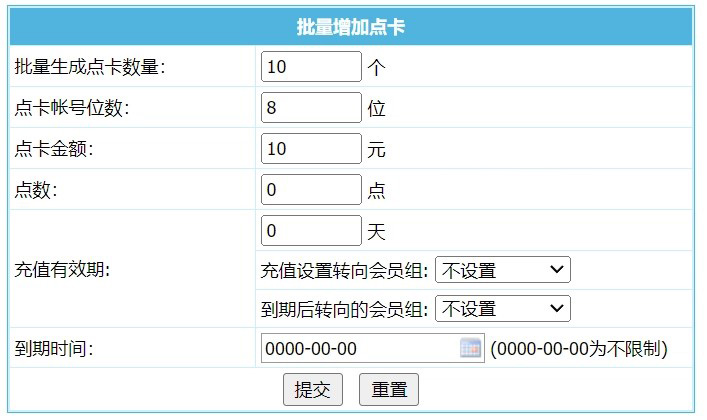 批量增加点卡: