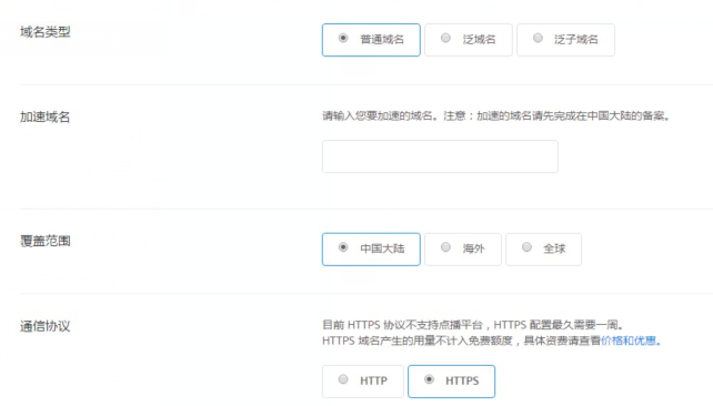 注意:与其他申请的免费SSL证书不同的是,七牛提供的SSL证书只能使用在其提供的加速CDN服务域名绑定中添加应用中的项目网站使用,不然比如小七博客(xqblog.com),如果有一个单独的二级域名图片存储或者其他项目,就可以在添加域名的时候绑定证书。